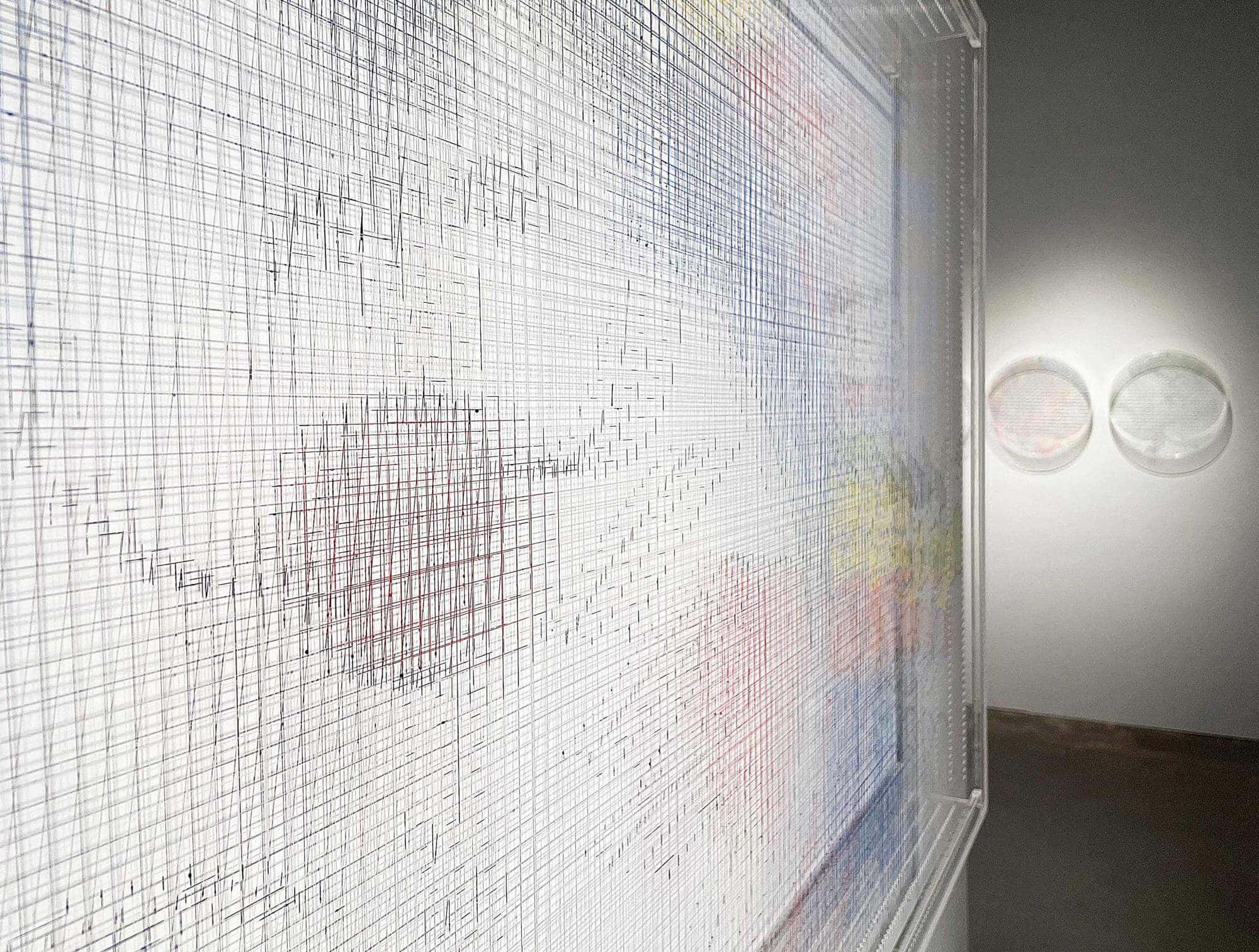 2017年高雄獎得主的廖敏君,近期於多納藝術華山館呈現「曖曖-記憶的盒子」個展,帶來藝術家不同系列的創作,其中涵蓋著她對家人、對兒時、對時間的闡述,擅以工業素材結合編織手法,創造新舊記憶的結合,將時間的痕跡停留在某一刻度,並利用碳纖維線的串聯與顏料的疊加,成為一道幽微、隱晦的影像。