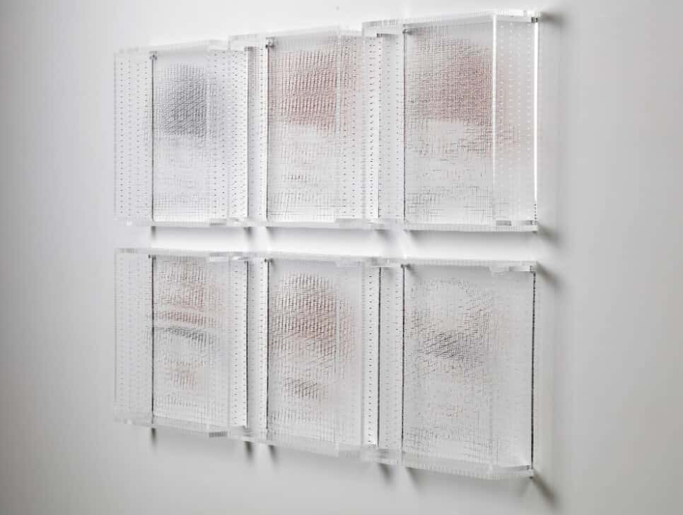 〈曖曖-她她〉,透明壓克力、 透明 1.75 碳纖維線、透明免燒玻璃顏料,65 x 65 x 9 cm。圖 / 多納藝術提供。