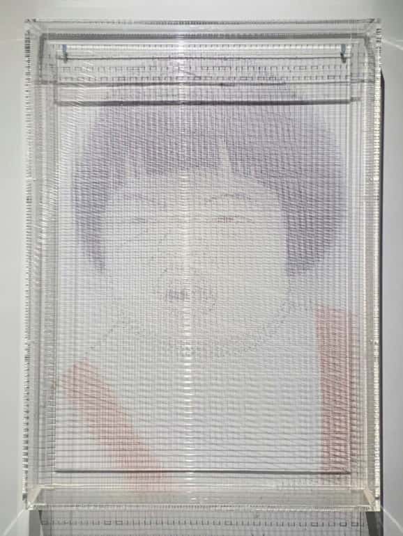 廖敏君作品-〈曖曖-他們呢?〉,透明壓克力、 透明 1.75 碳纖維線、透明免燒玻璃顏料,67 x 93 x 5 cm。圖 / 多納藝術提供。